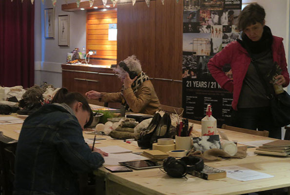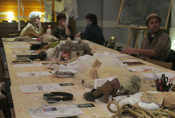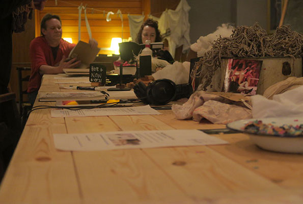 An instruction based, staged participatory environment that encouraged audience / participants to explore props, materials and sketchbooks from past productions as well as delve into newly created online resources created to mark VDT’s 21 anniversary in 2015.